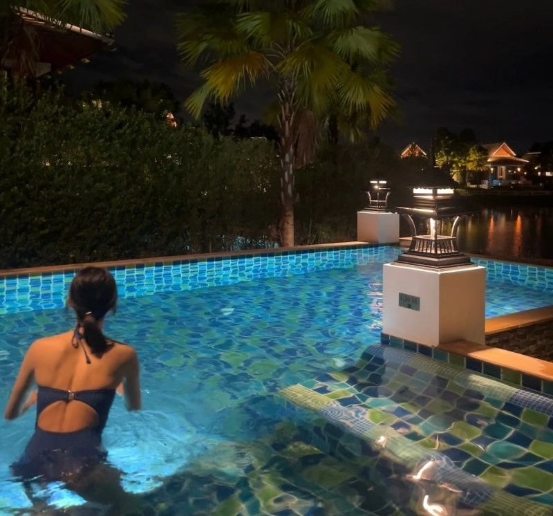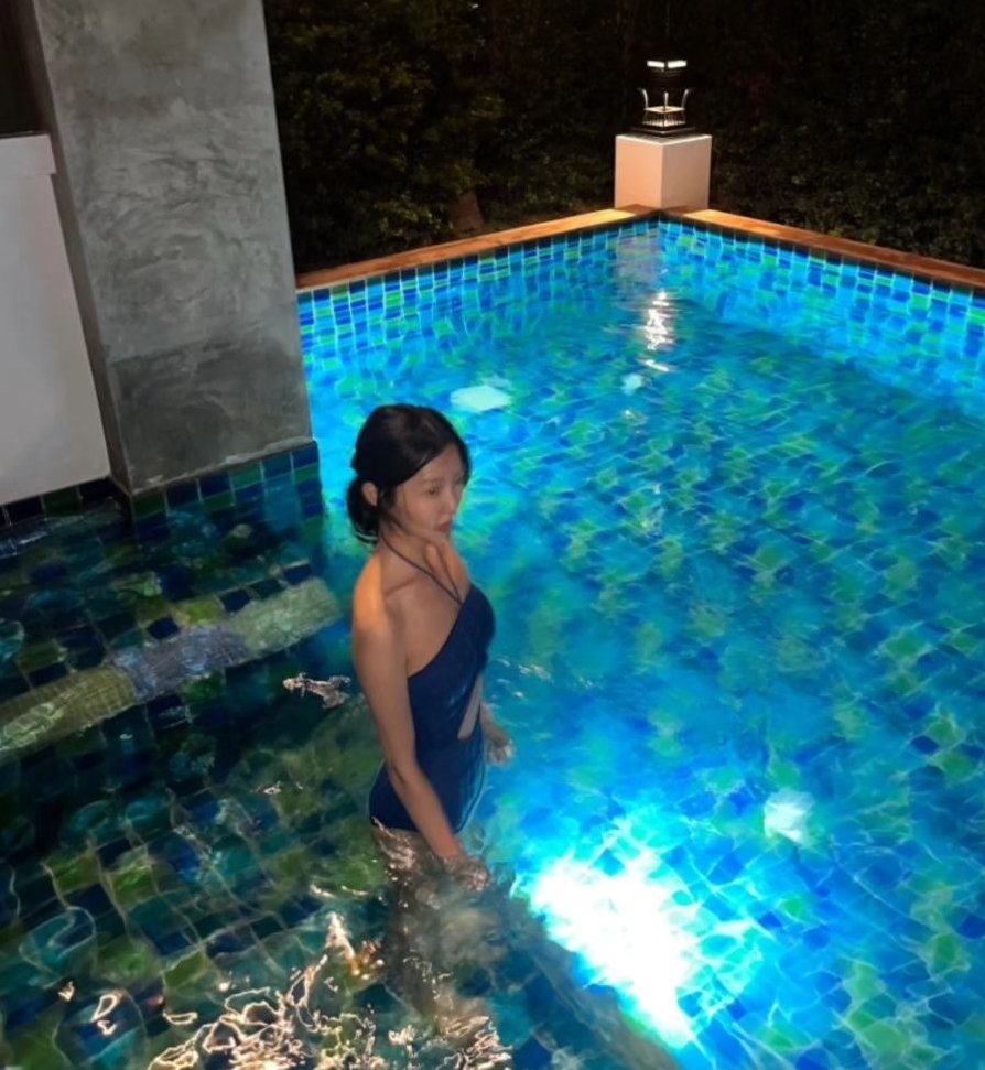 공개된 사진 속 주현영은 야외 수영장에서 수영을 하며 다양한 포즈를 취하고 있다. 파란색 수영복을 입은 주현영은 가녀린 어깨라인과 늘씬한 몸매를 뽐내 보는 이들의 눈길을 끌었다.