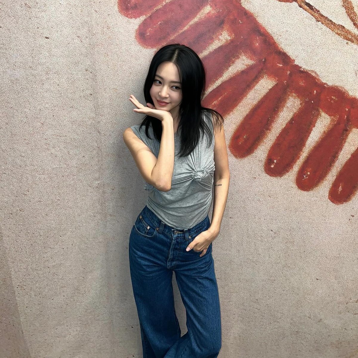공개된 사진 속 한예슬은 그레이 티셔츠에 데님 청바지를 입고 다양한 포즈를 취했다. 양쪽 가슴 부분을 묶어 독특한 포인트를 준 한예슬은 유니크한 패션 스타일도 완벽하게 소화해 보는 이들의 눈길을 끌었다.