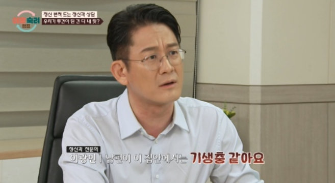 전문의는 아내가 남편에게 실외 배변을 시켰던 것에 대해 “솔직히 이런 표현까지 쓰고 싶진 않은데, 남편이 이 집안에서 기생충 같다. 벌레 같다는 것”이라고도 말했다. 아내가 “잘 살려고 하면 폭력이 온다”고 억울해하자 전문의는 남편이 왜 그러는 것 같냐고 되물었다. 아내는 “‘빚을 다 갚았는데 왜 이렇게 살고 있지?’ 하는 마음일 것”이라고 대답했다.