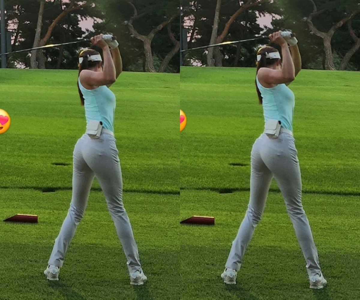 공개된 사진 속 신수지는 필드에서 골프를 치고 있는 모습이다. 민소매탑에 레깅스를 입은 신수지는 탄탄한 몸매와 완벽한 애플힙을 자랑해 눈길을 끌었다.