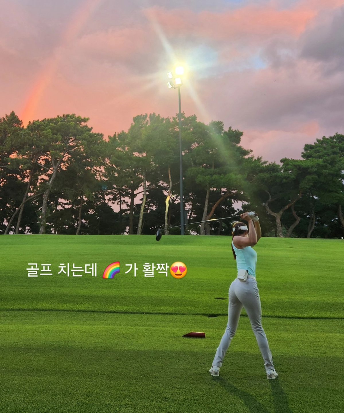 신수지는 지난 3일 자신의 인스타그램에 “골프 치는데 무지개가 활짝”이라는 글과 함께 사진을 게재했다.