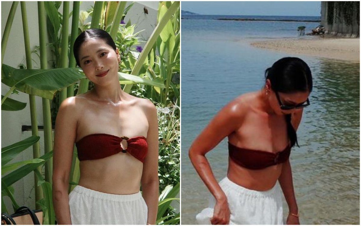 사진 속 오윤아는 빨간 색 튜브톱과 흰 레이스 치마를 매치해 휴양 패션을 완성했다. 나무, 바다를 배경으로 싱그러운 미소를 짓거나 다양한 포즈를 취하고 있다. 자전거를 타면서는 편안하고 해맑은 분위기를 낸다. 특히 중요 부위만 겨우 가려지는 한 뼘 튜브톱이 섹시한 느낌을 더한다.
