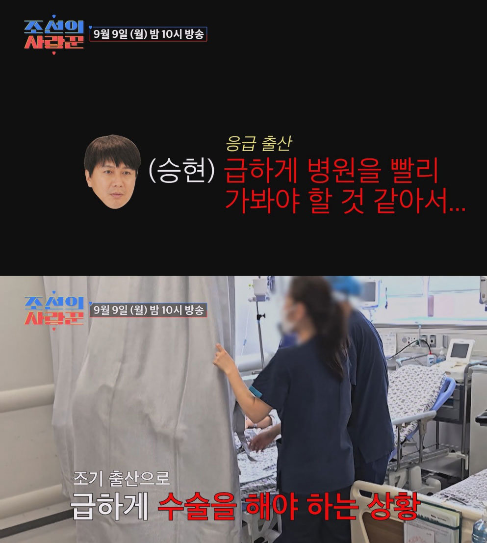 긴급 출산 당일 무슨 일이 있었는지는 9월 9일(월) 오후 10시 방송되는 리얼 다큐 예능 TV CHOSUN ‘조선의 사랑꾼’에서 확인할 수 있다.