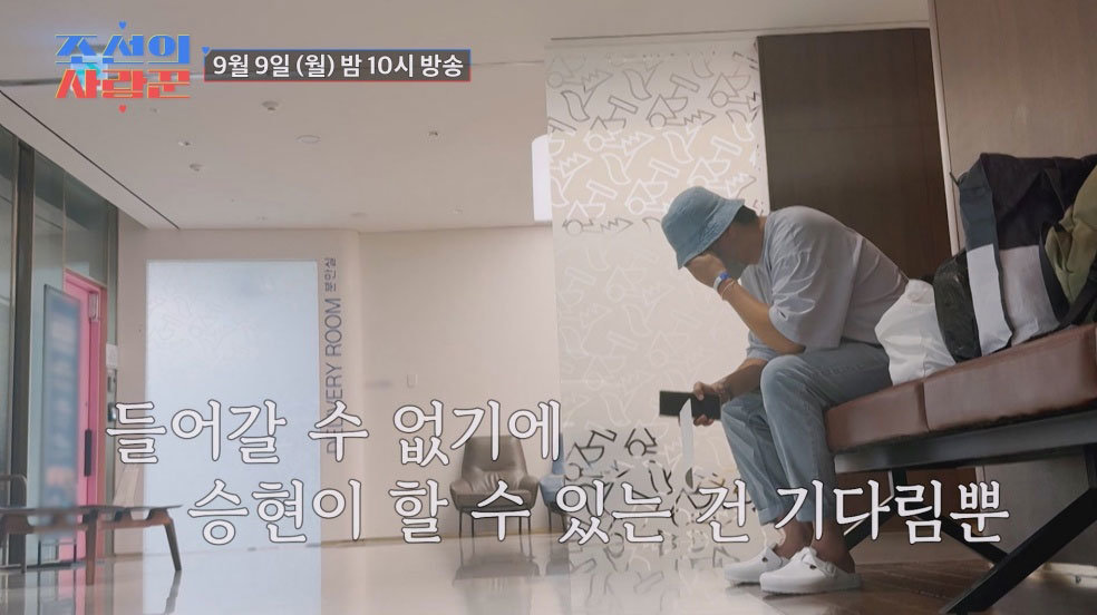 김승현의 아내 장 작가는 침대에 누운 채 “너무 당황스러워...”라며 어쩔 줄을 몰라했다. 김승현은 “너무 걱정하지 마”라며 아내를 안심시켰다. 그렇게 장 작가는 수술실에 들어갔고, 김승현은 수술실 앞에서 초조하게 기다렸다. 시간이 꽤 흘렀고 김승현은 “수술 들어간 지가 꽤 됐는데...”라며 걱정을 감추지 못했다. 그러던 중 의료진이 “장정윤 님 보호자 분!”이라며 급히 김승현을 찾았다.