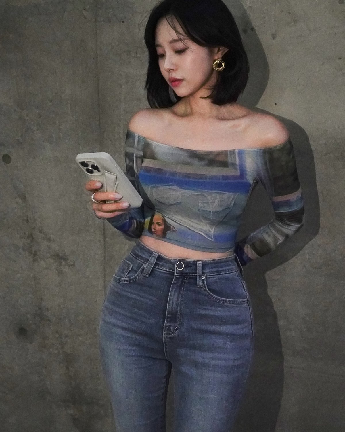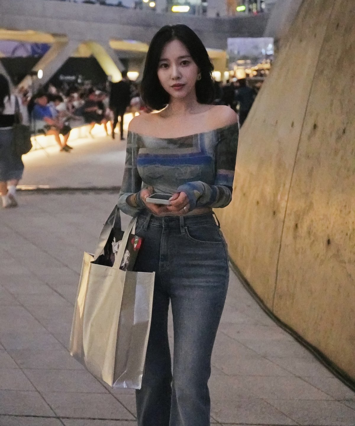 공개된 사진에는 서울 패션위크에 참석한 이솔이의 모습이 담겼다. 이솔이는 오프숄더 티셔츠에 데님 팬츠를 입고 섹시한 S라인과 황금 골반을 뽐내 보는 이들의 시선을 끌었다.