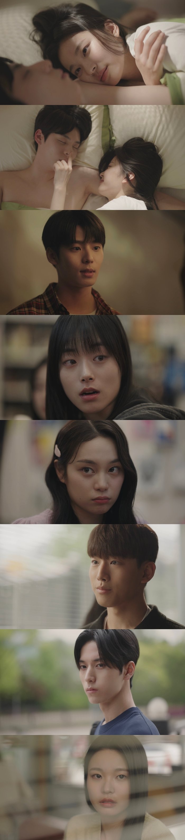 박지유는 자신의 방을 찾아온 남자친구 노찬성과 달콤한 아침을 보내던 중, 출장 갔던 엄마가 예상보다 일찍 돌아오며 일촉즉발의 상황을 맞았다. 가까스로 위기를 모면한 뒤, 침대 밑에 숨은 노찬성의 해맑은 표정에 왠지 모를 짜증을 느끼는 박지유의 모습은, 이들의 관계가 예전 같지 않음을 암시했다. 또 ‘노찬성 베프’ 강산과 셋이 PC방에 게임을 하러 가서도 노찬성은 박지유의 질문을 듣는 둥 마는 둥 했고, 오히려 강산이 박지유를 자상하게 챙겼다.