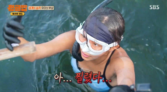 먼저 유이와 김경남은 바다에 몸을 던져 성게를 채집했다. 꼬챙이로 성게를 낚아 올리던 유이는 직접 손으로 잡아들었다. 류수영에게 살아있는 성게를 식재료로 선물하고 싶었기 때문. 하지만 갈고리 모양의 가시가 두꺼운 장갑까지 꿇고 유이의 엄지손가락에 파고들었다. 유이는 “요령이 없었다. 성게를 툭툭 쳐서 올린 다음에 ‘장갑을 낀 상태니까 괜찮겠지’ 싶어서 잡고 올리다가 힘을 줬나 보더라. 그 사이에 성게 가시가 장갑을 뚫고 올려왔다”고 털어놨다.