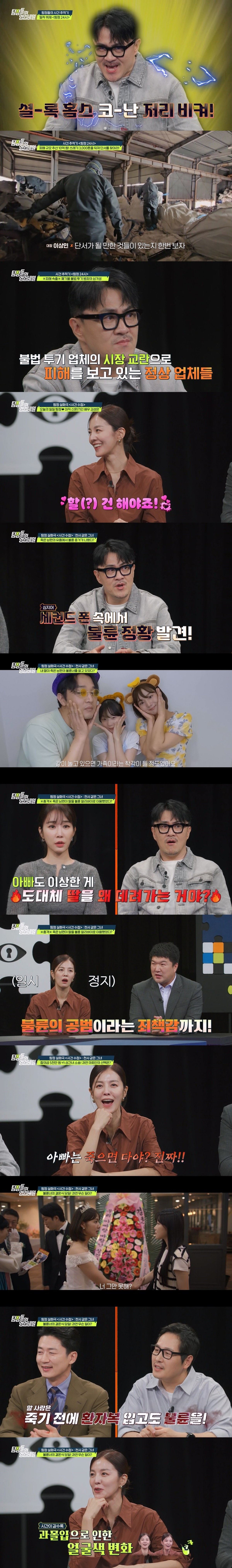 상간녀를 밀착 감시한 탐정들은 그녀가 의뢰인의 딸과 만나는 장면을 포착했다. 딸은 “그 문자 내가 보낸 거야”라고 폭탄 선언을 날렸다. 알고 보니 남편은 당시 중학교 2학년이던 딸을 상간녀와 만나는 자리에 자주 대동했다. 상간녀는 딸에게 고가의 헤드폰과 아이돌 콘서트 티켓을 선물해 환심을 샀다. 김성은은 “저희 큰아들도 중2다. 내가 만약에 남자를 만나는데, 아이를 데려간다는 게 말이 되냐”며 격분했다. 이에 ‘도파민 탐정’ 데프콘은 “혹시…아이가 엄마에게 안 한 이야기가 혹시…있을까요?”라며 캐묻기 시작했다. 김성은은 “너무 무섭다. 물어봐야겠다. 엄마 빼고 아빠랑 누구 만난 적 있는지…”라며 과몰입해 웃음을 선사했다.