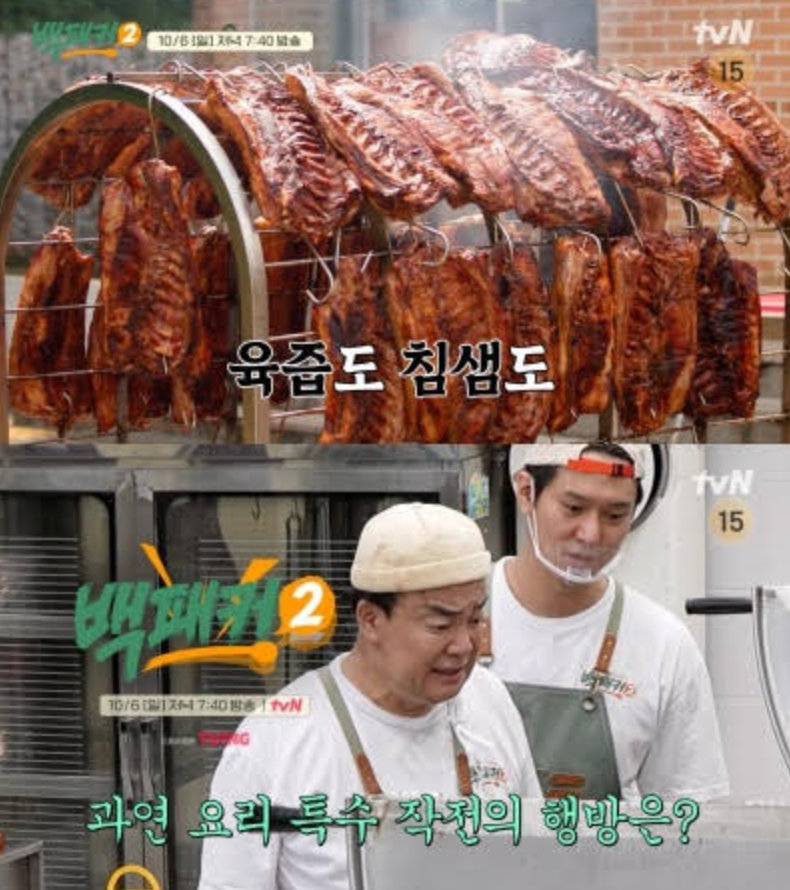 백종원은 특수 조리기구인 터널식 바비큐 기계까지 공수해오며 특대 용량에 특제 양념까지 어느 것 하나 평범하지 않은 바비큐 요리에 사활을 건다. 출장 전날 미리 만나 백종원과 함께 바비큐를 준비한 안보현이 캠핑 경력 14년 차의 내공을 녹여내며 든든한 ‘파이어 마스터’로 나설 예정. 바비큐 듀오로 나선 백종원과 안보현은 뜨거운 불 앞에서 사투를 벌이며 통삼겹 터널을 완성한다.