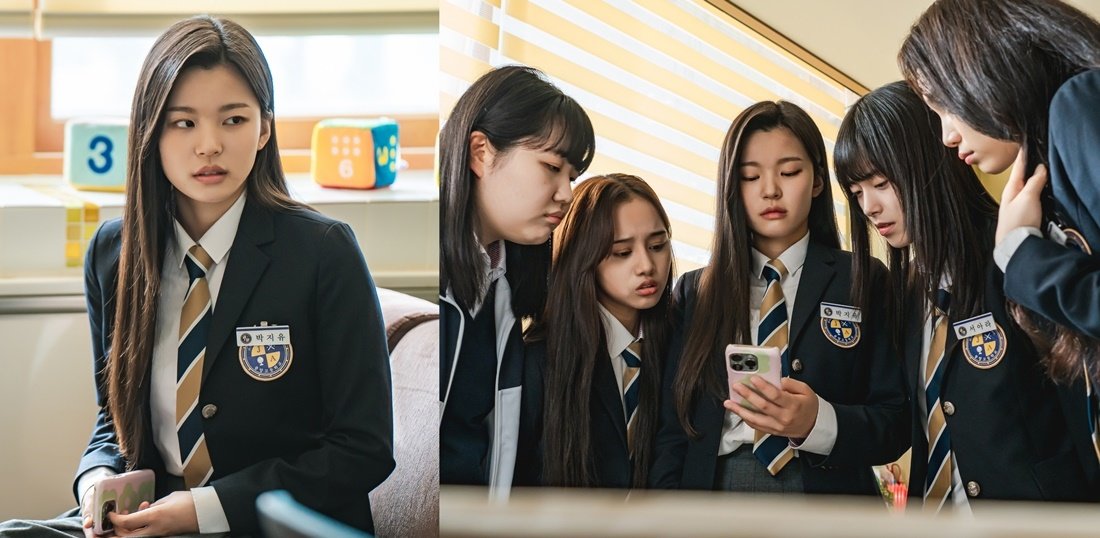 해당 DM은 앞서 벌어진 박지유와 남도하의 돌발 키스와 삼각 스캔들을 염두에 둔 듯, “남자에 죽고 못 사나 봄”, “더러운 X” 등 박지유의 남자관계를 향한 폭언과 모함이었다. 박지유에게 온 ‘욕설 DM’을 본 친구 무리들도 경악을 금치 못한다. ‘기존쎄 팩폭러’ 김예리는 살벌한 말발로 답장을 보내며 반격을 퍼붓는다.