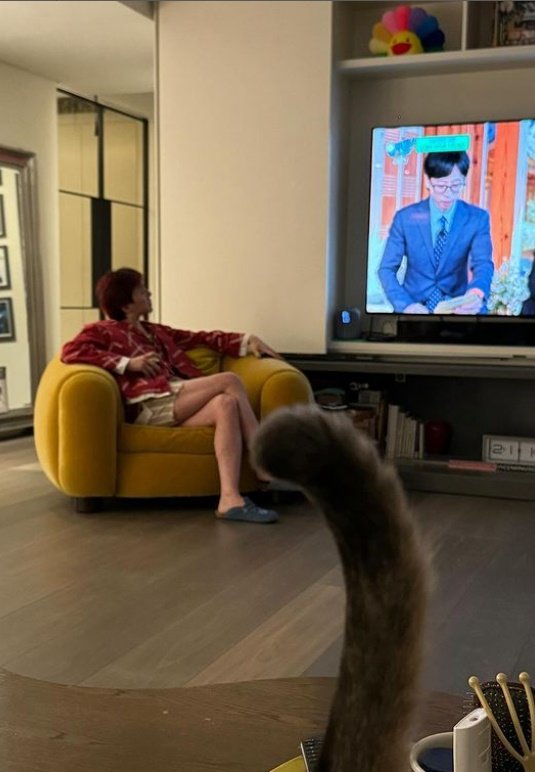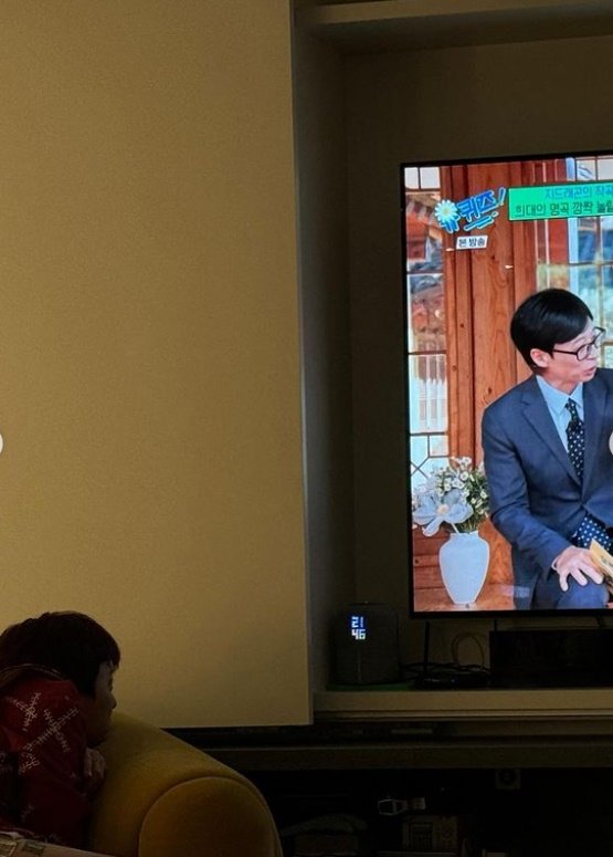 공개된 사진에서 지드래곤은 집으로 추측되는 장소에서 사진을 찍었다. 특히 자신이 출연한 ‘유퀴즈’를 시청하고 있는 지드래곤의 모습이 인상적이다.