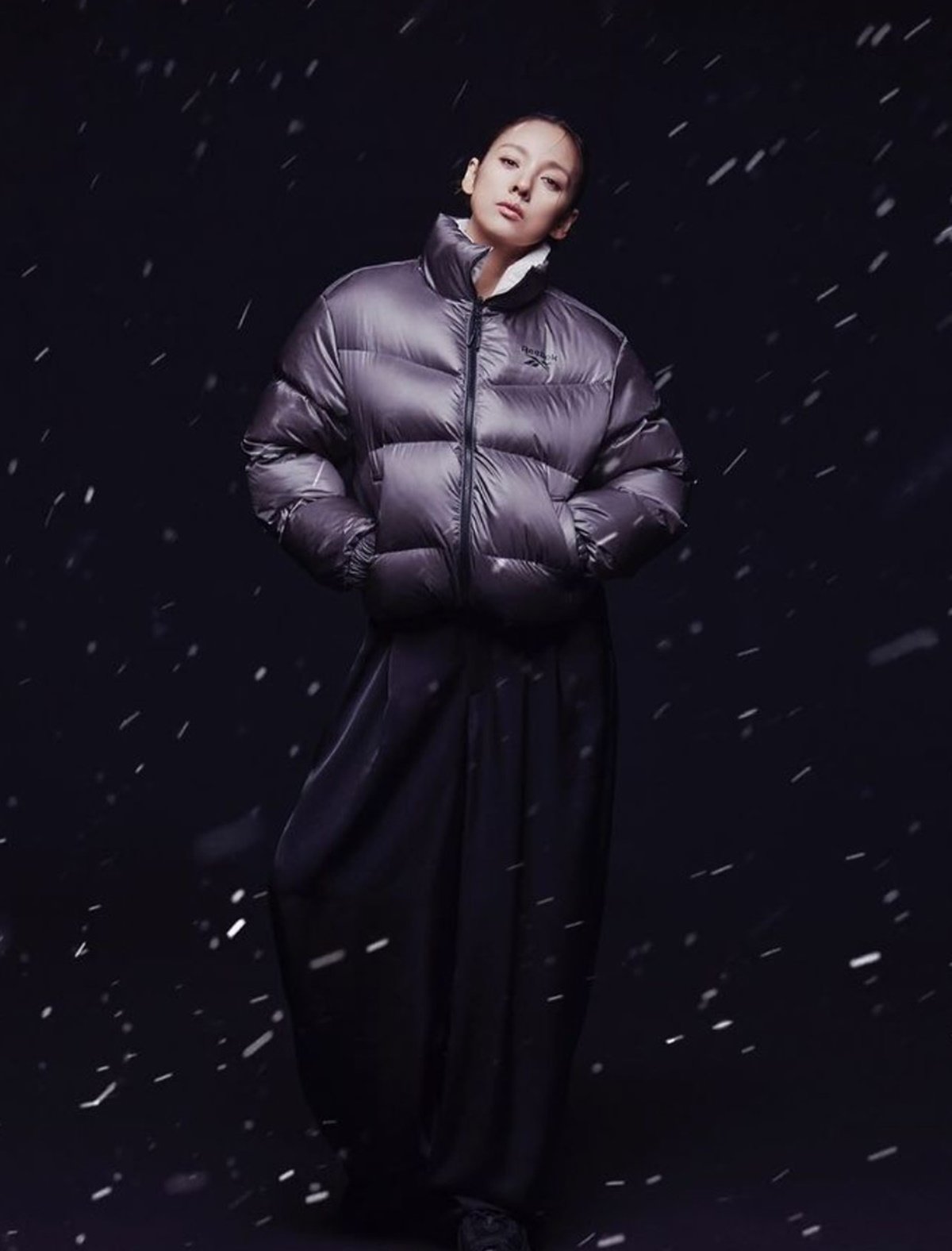 사진 속 이효리는 다양한 겨울 패딩 패션을 선보인다. 도도한 표정으로 흑-백색의 패딩을 완벽하게 소화한다. 그 중 가장 눈길을 끈 건 노란색 쇼트패딩 사진이다. 하의로 바지를 입지 않고 스타킹에 팬티만 입었다. 두툼한 상의 패딩과 상반되어 독특한 룩을 완성했다.