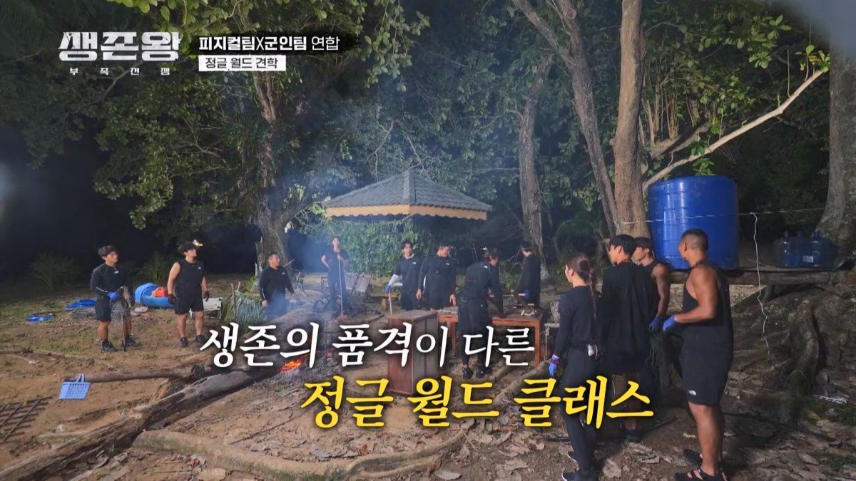 25일 ‘생존왕 : 부족전쟁’에서는 호화 리조트 부럽지 않은 ‘정글팀’ 김병만-정지현-김동준-김민지의 생존지가 공개된다. 김병만은 버려진 물탱크와 폐자재를 주워 와 세면대를 갖춘 샤워장을 만들었다. 김동준은 “기가 막힌다. 우리 집보다 낫다”며 감탄했다.