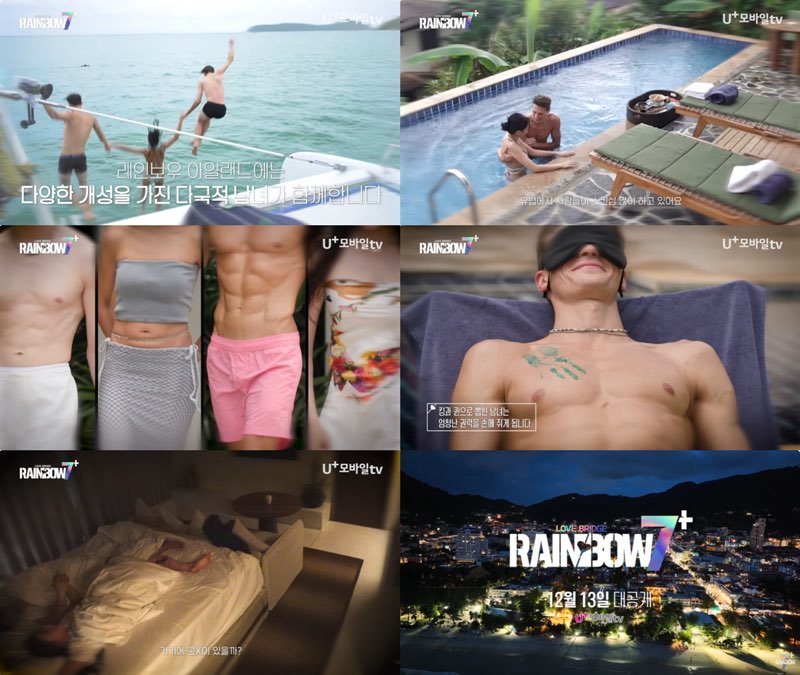 12월 13일(금) 첫 공개 예정인 LG U+모바일tv 오리지널 시리즈 ‘레인보우7+’는 태국 푸켓으로 떠난 다국적 남녀들의 솔직하고 과감한 사랑 이야기를 담는 리얼 연애 프로그램이다. 아시아, 유럽, 미주권 등 다양한 나라에서 온 싱글 남녀들의 연애 스타일을 보여주는 한편, 문화 차이와 연애관 충돌을 겪으면서 발생하는 갈등 상황을 생생하게 그려낼 예정이라 기대를 모으고 있다.
