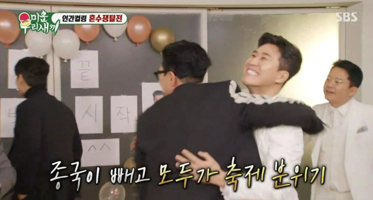 ‘인간 컬링 혼수 쟁탈전’이 벌어진 가운데 김종국에게 냉장고를 받기 위한 김종민과 김준호의 치열한 대결이 펼쳐졌다. 이상민과 김희철이 김종민을 밀어 냉장고를 획득하는데 연달아 성공하자 김종국은 “이 정도면 내가 신부 아니냐”라며 망연자실했다.