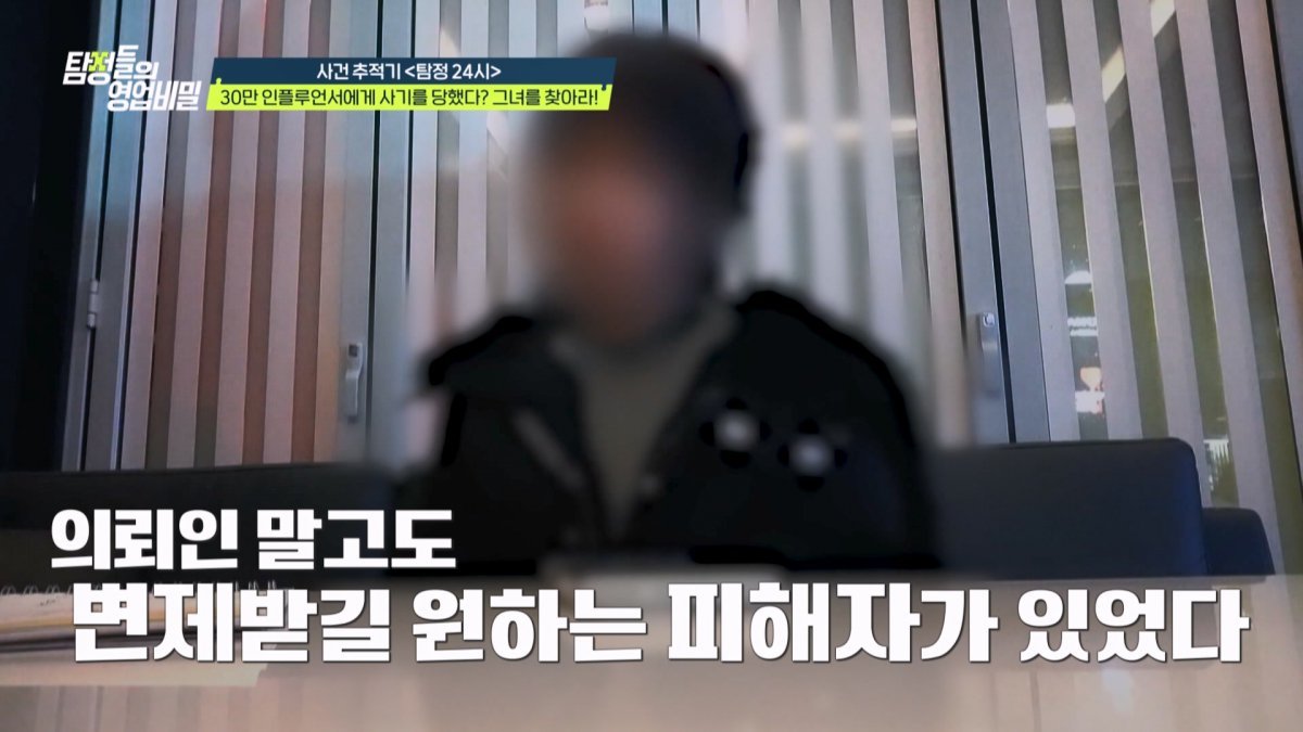 27일 방송된 ‘탐정들의 영업비밀’에서는 ‘도깨비 탐정단’을 찾아온 의뢰인이 친하게 지내던 동생이자 인플루언서에게 약 5억원 정도의 사기를 당했다고 호소했다.