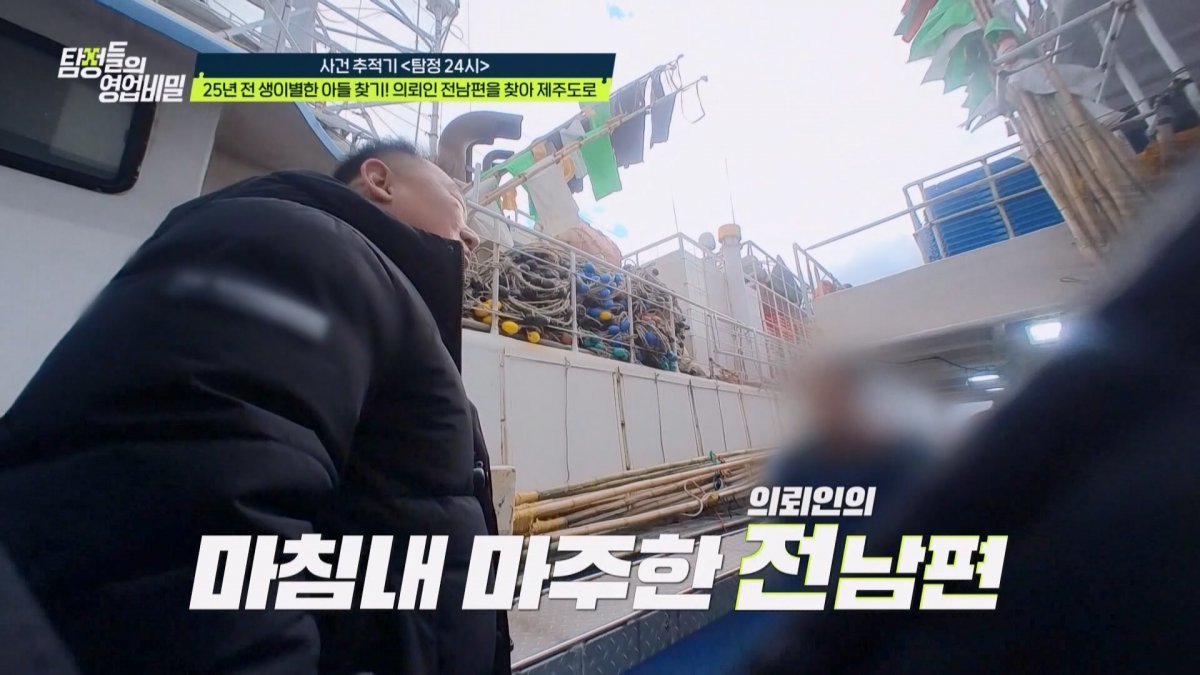 제주도에서 일하고 있는 전남편을 찾아가기 전, 백호 탐정단은 전남편과 재혼했던 여성의 어머니를 만났다. 그녀는 “전남편의 큰아들은 내 딸(재혼한 아내)과의 사이에서 태어난 아이가 맞다”는 확인으로 탐정단에 도움을 줬다. 결국 의뢰인이 찾는 아들의 행방은 묘연한 가운데, 백호 탐정단은 전남편을 직접 만나기 위해 제주도로 향했다. 현지에 도착해 여러 항구를 돌아가며 탐문을 이어간 끝에, 백호 탐정단은 겨우 전남편을 만났다. 그러나 전남편은 의뢰인의 이름을 듣자 “모릅니다. 왜 나를 걸고넘어지냐. 그 여자 말만 들으면 짜증만 난다”며 자리를 피했다.
