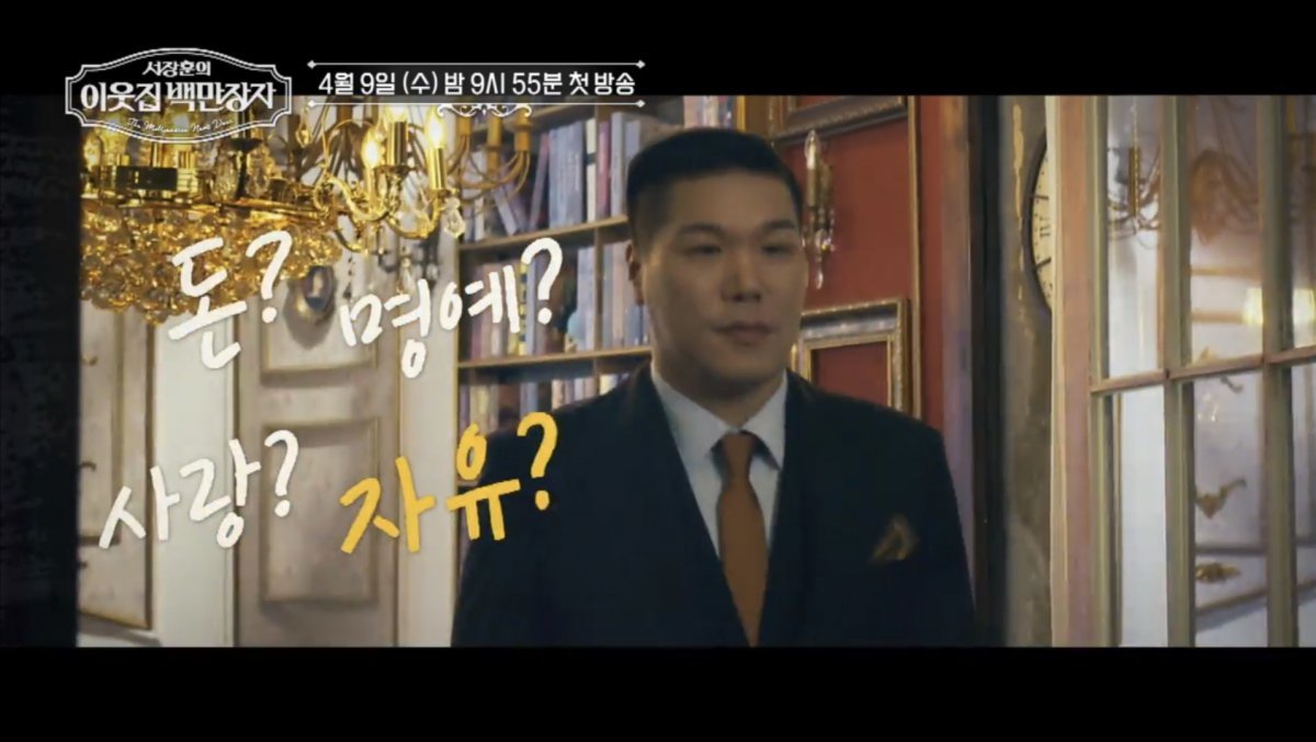 이어 럭셔리 앤티크 분위기의 서재에 모습을 드러낸 서장훈은 백지수표에 금액을 적어 넣고, 머리를 매만지며 결연한 표정으로 부자를 만나기 위한 준비에 나선다. “돈? 명예? 사랑? 자유? 우리는 무엇을 가져야 행복해지는 것인가”라는 질문을 통해 서장훈이 부자를 만나러 가는 이유를 짐작해볼 수 있다.