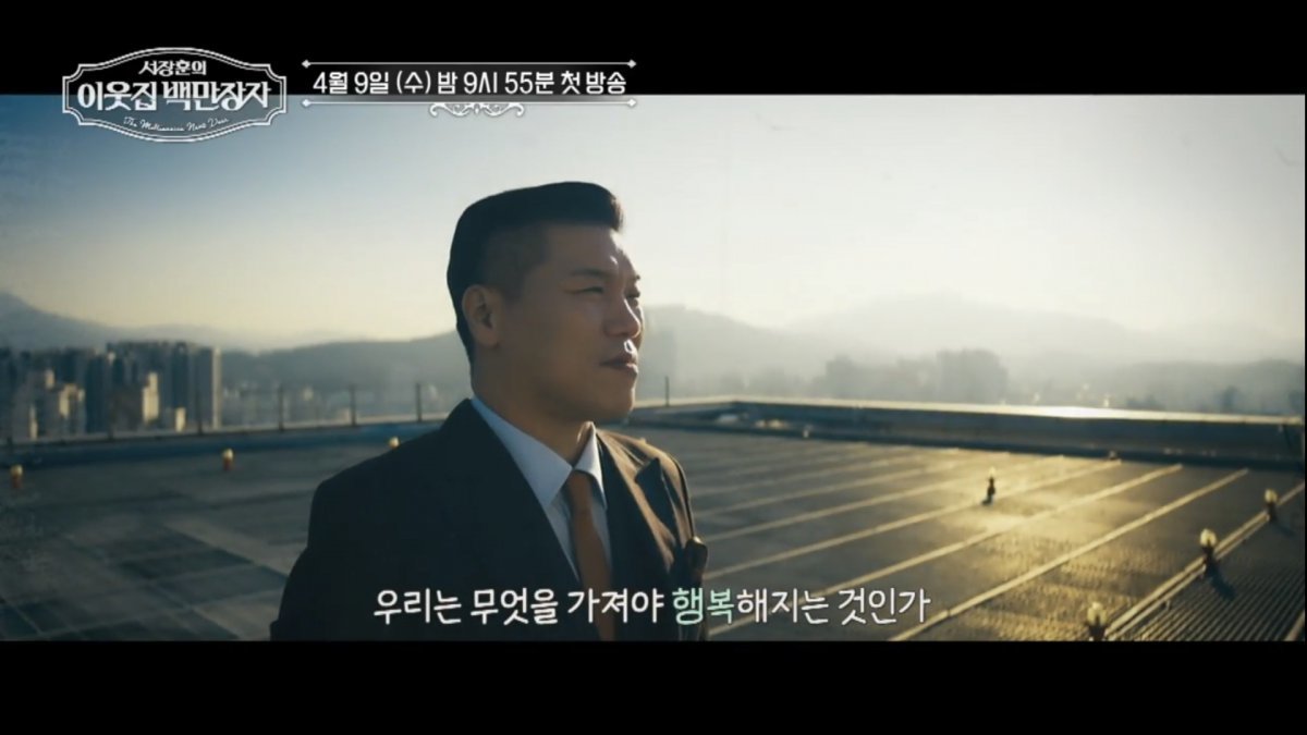 이런 가운데 ‘이웃집 백만장자’가 성공에 관한 서장훈의 깊은 고민이 담긴 티저 영상과 함께 첫 방송 일자를 공개했다. 해당 티저 영상 속 서장훈은 먼저 ‘킹스맨’을 연상케 하는 쓰리피스 수트 비주얼로 중후한 멋을 풍기며 시선을 사로잡고 있다. 그리고 고층 빌딩 옥상에서 도심을 바라보며 “도대체 성공이란 뭘까?”라고 독백한다.