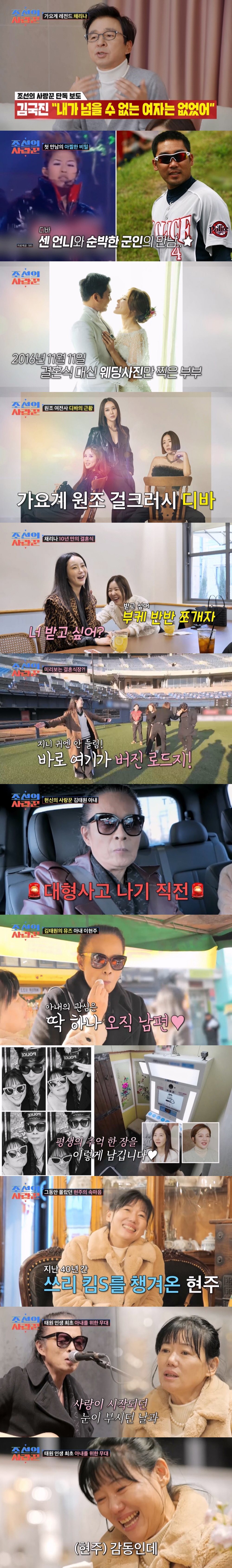 24일 방송된 ‘조선의 사랑꾼’에서는 ‘가요계 역사상 최단기간 백만 장 돌파’, ‘가요 톱10 5주 연속 1위’, ‘90년대 톱스타’라는 화려한 수식어의 주인공 채리나가 6살 연하 남편 박용근과 함께 합류했다. 김국진은 음악방송 VJ 시절 채리나와의 인연을 설명하며 당시 강수지와의 만남에 대해서도 털어놨다. 이에 황보라가 “(그 시절 강수지는) 넘볼 수 없었냐”고 질문하자, 발끈한 김국진은 “내가 넘을 수 없는 사람은 아무도 없었다”고 답해 ‘근거 있는 자신감’을 내비쳤다.