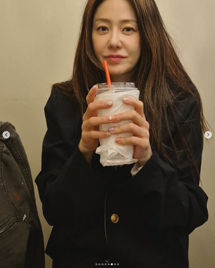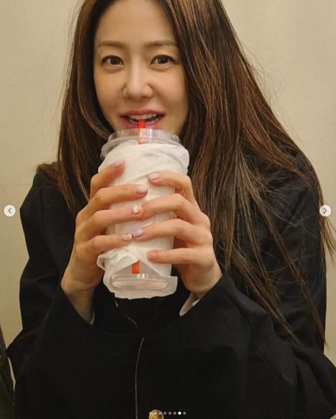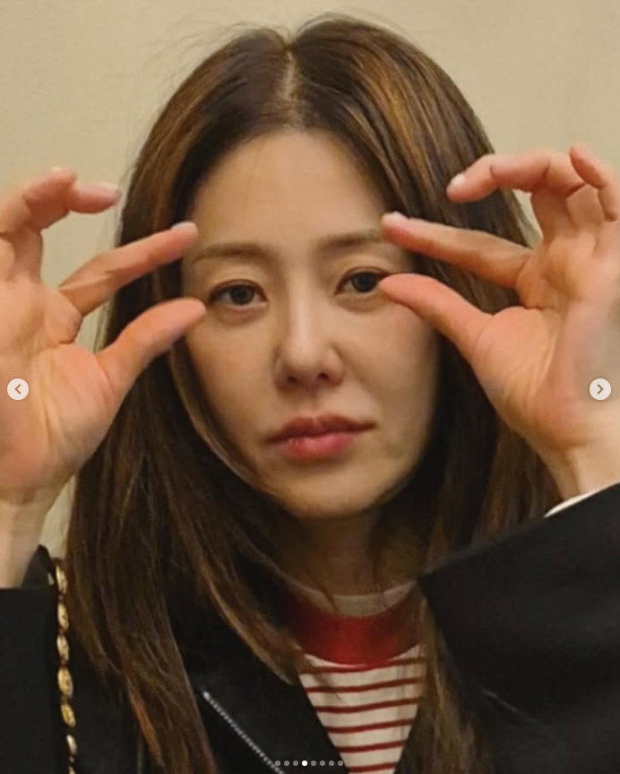 사진 속 고현정은 익살스러운 표정을 짓는다. 머리카락을 잡아 끌어올리며 자체 리프팅 효과를 보여주는 듯하다. 또 다른 사진에는 자신 행동이 민망한지 얼굴을 두 손으로 가리고 있다. 음료를 마시면서도 귀여운 표정을 지어보인다.