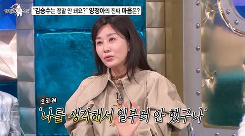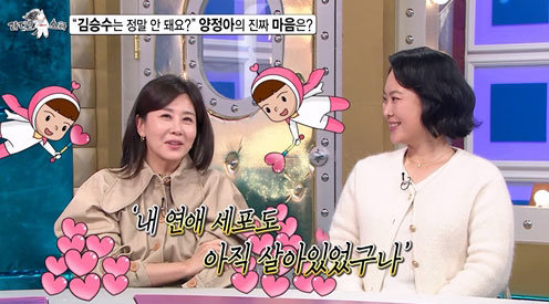 ‘라디오스타’에서 양정아가 예능 프로그램을 통해 ‘친구 사이’에서 ‘썸남썸녀’가 된 김승수에 대한 현재의 속마음을 털어놓는다.