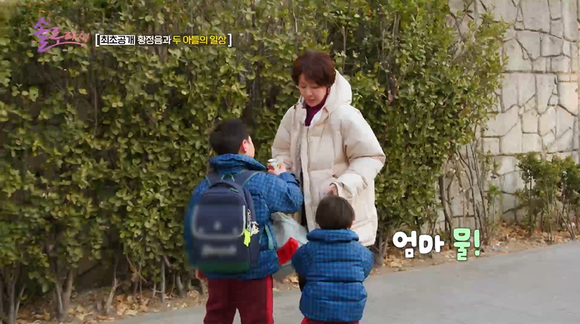 직후, 황정음은 거실에서 두 아들과 자다가 눈을 떴다. 든든한 첫째 아들 왕식이, 귀여운 둘째 아들 강식이를 사랑스럽게 바라보던 황정음은 곧장 등교, 등원 준비를 했다. 정신없는 와중에도 황정음은 “아이들이 너무 빨리 크니까 (커가는 모습을) 눈에 다 담고 싶다. 그래서 시간이 있을 때는 무조건 아이들과 함께 한다”며 손을 잡고 등굣길도 함께 했다. 특히 아이들에게 한없이 다정하다가도 엄격할 때는 단호하게 대처해 소신 있는 ‘교육관’을 보여줬다.