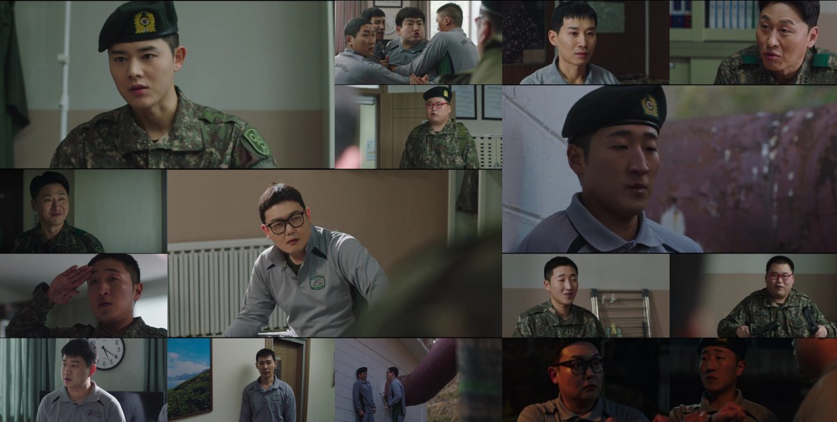 계획대로 신병을 속이기 위해 ‘일병 최일구’를 실컷 갈구며 메소드 연기를 펼치던 ‘병장 박민석’. 그러나 박민석의 선 넘는 과몰입은 결국 최일구를 폭발시켰다. 갑작스럽게 벌어진 박민석과 최일구의 쫓고 쫓기는 상황 속, 얼떨결에 최일구에게 어퍼컷을 날려버리는 실수를 저지른 문빛나리. 그렇게 1생활관의 신병놀이는 난장판으로 마무리됐다.
