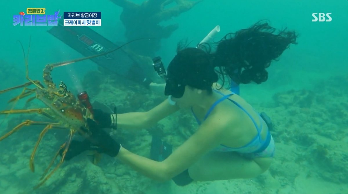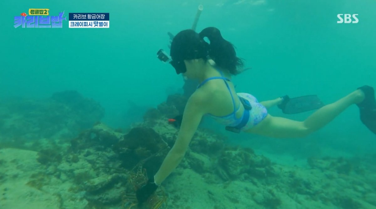 해산물 확보를 위한 본격적인 바다 사냥이 시작됐다. 바다에 강한 자신감을 드러낸 김옥빈과 달리 이준은 물살이 강한 카리브해 앞에서 긴장한 모습을 보였다. 해루질 면허, 프리다이빙 면허를 보유한 김옥빈은 물속에서 인어 같은 모습으로 크레이피시를 연달아 잡아내며 감탄을 자아냈다. 반면 이준은 처음 접한 거친 물살과 미끄러운 해산물에 연신 당황하며 웃음을 안겼다.