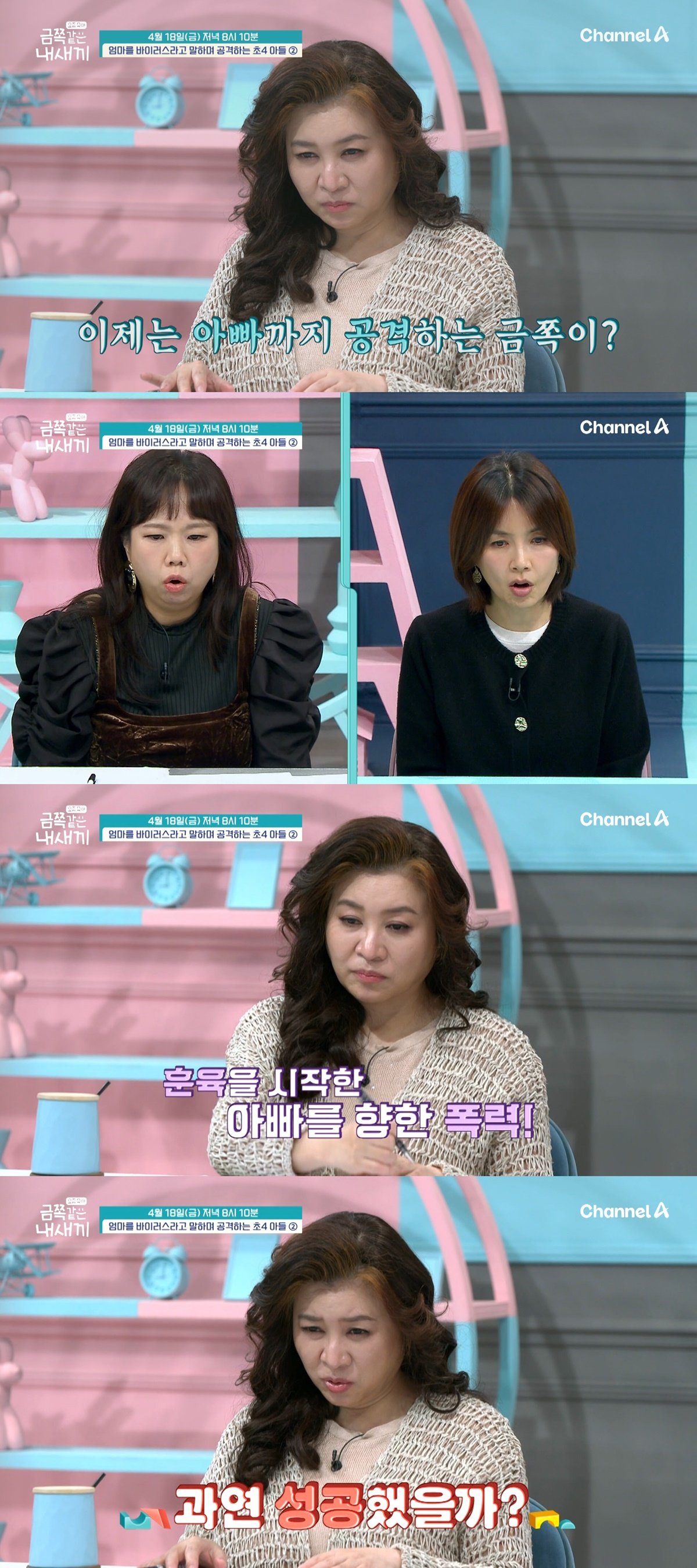 이날 스튜디오에는 엄마에게 유독 적대감을 드러내며 폭력적인 행동까지 보였던 초4 아들을 둔 부부가 다시 한번 출연한다. 엄마는 “뜻대로 되지 않는 솔루션에 지치고 힘들었다”고 고백하고, 아빠 역시 “생애 처음 시도한 훈육이 낯설고 어려웠다”며 속내를 털어놓는다. 과연 아빠의 생애 첫 훈육을 금쪽이가 받아들일 수 있을지 궁금증이 커진다.