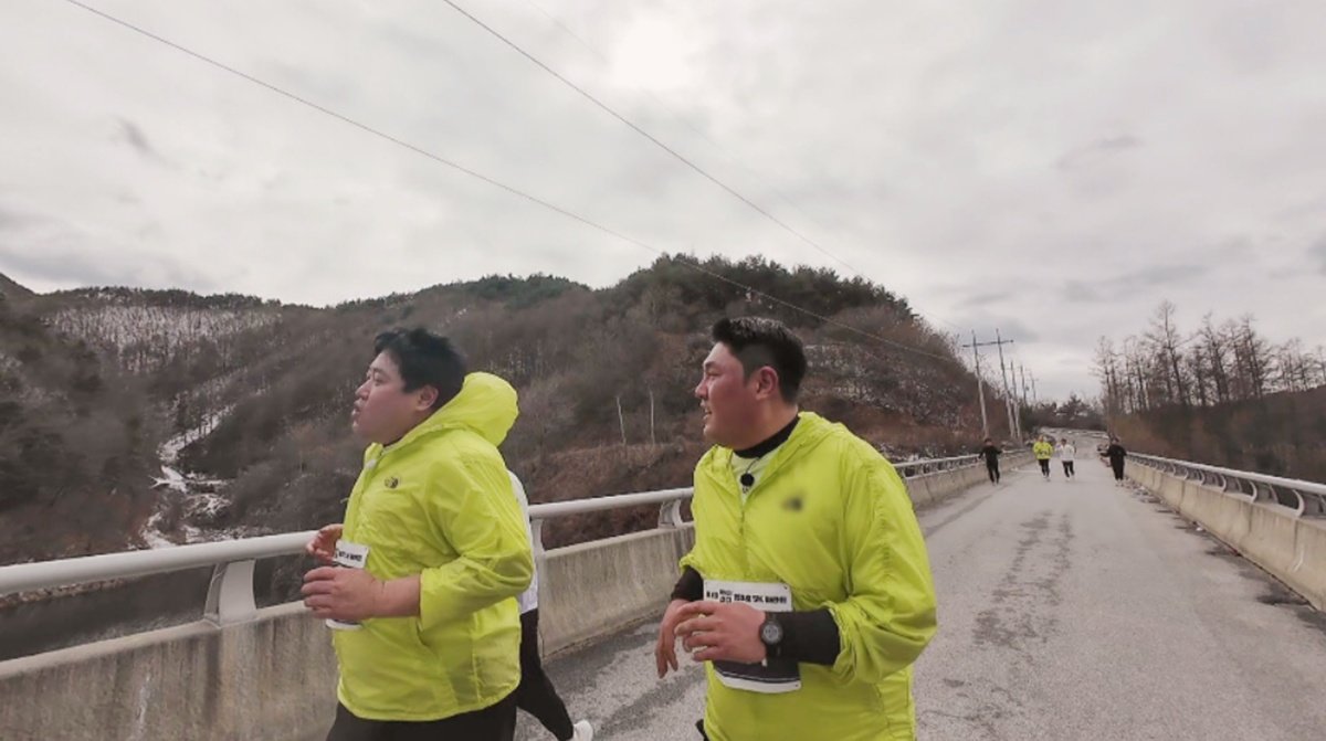 잠시 후, ‘초짜 러너’들은 85명의 일반인 러너들과 함께 ‘5km 마라톤’에 돌입한다. 이때 ‘최약체’로 꼽혔던 가수 슬리피는 단독 질주에 나서는 반면, ‘레전드 스포츠 스타’ 허재-양준혁-최준석은 일찌감치 하위권을 형성해 짠한 웃음을 안긴다. ‘환갑’ 허재는 “숨통이 끊어질 것 같다”며 헉헉 거리고, ‘56세 늦둥이 아빠’ 양준혁은 “125kg 몸을 끌고 뛰는 거 너무 힘들다”고 토로하다가, “허재 형한테는 질 수 없다”며 갑자기 그를 앞질러 간다.