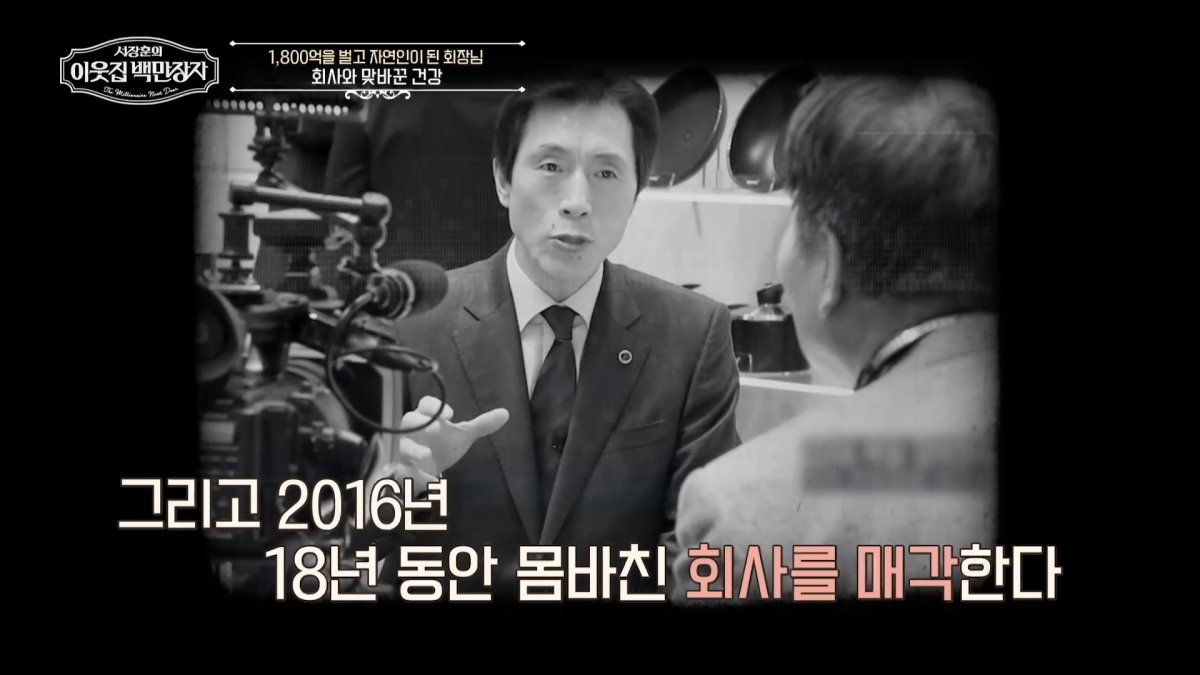 23일 EBS, E채널 공동 제작 ‘서장훈의 이웃집 백만장자’에서는 세계 최초 양면 프라이팬 개발로 연 매출 2천억 원 돌파, 홈쇼핑 최단기간 최다 판매 기네스북까지 등극한 ‘주방용품계의 살아있는 신화’ 이현삼이 출연했다. 사업의 성공으로 승승장구하던 이현삼은 2016년 건강이 악화돼 회사를 1800억 원에 매각한 뒤 산으로 들어갔다. 그는 ‘이웃집 백만장자’를 통해 인생에서 돈보다 중요한 가치들에 대해 강조하고, 자연인으로 살아가는 행복한 산속 생활을 공개했다.