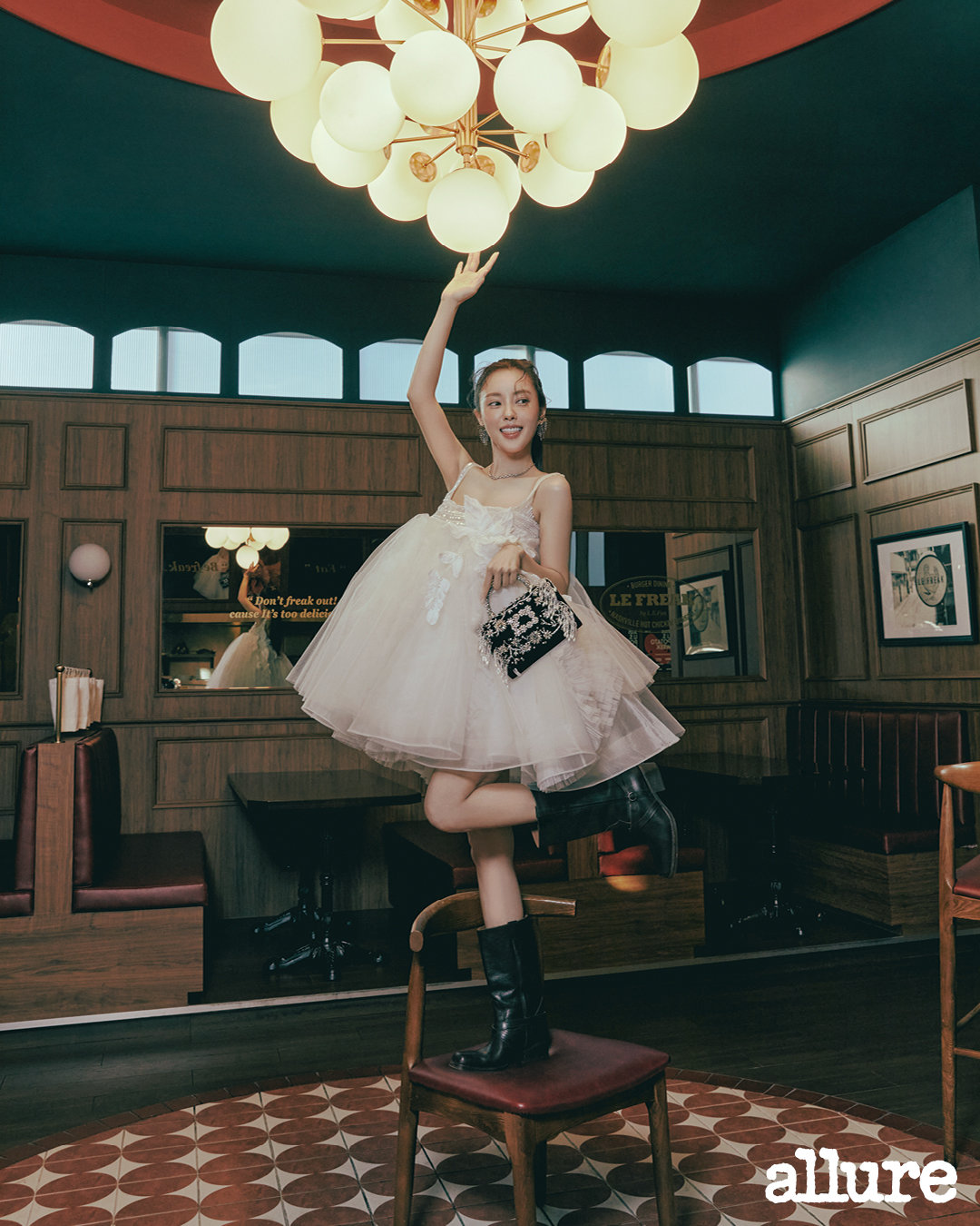 뿐만 아니라 베이비 돌 스타일의 웨딩드레스부터 화이트 슈트, 미니멀한 디자인의 원피스 등 다채로운 스타일을 자유자재로 소화하며 로맨틱한 기운을 한껏 발산한다.
