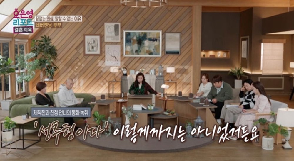 이후 부부가 함께 술을 마시며 대화를 나누는 모습이 공개됐다. 관찰 영상 속 아내는 남편에 대한 불만을 토로하다가 돌연 “우리 엄마와 작은언니한테 성추행은 왜 했느냐”라며 “엄마 가슴 만지려고 하고, 언니한테 키스하려는 행동은 왜 했어?”라고 따져 물어 모두를 놀라게 했다.