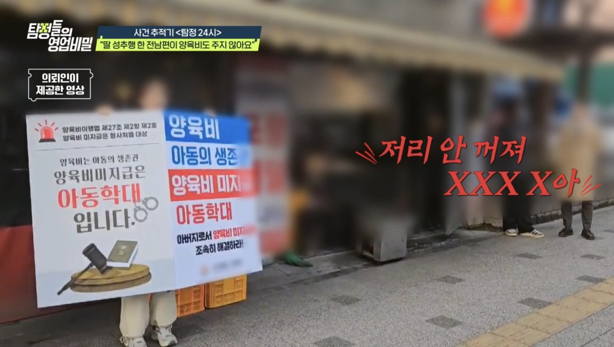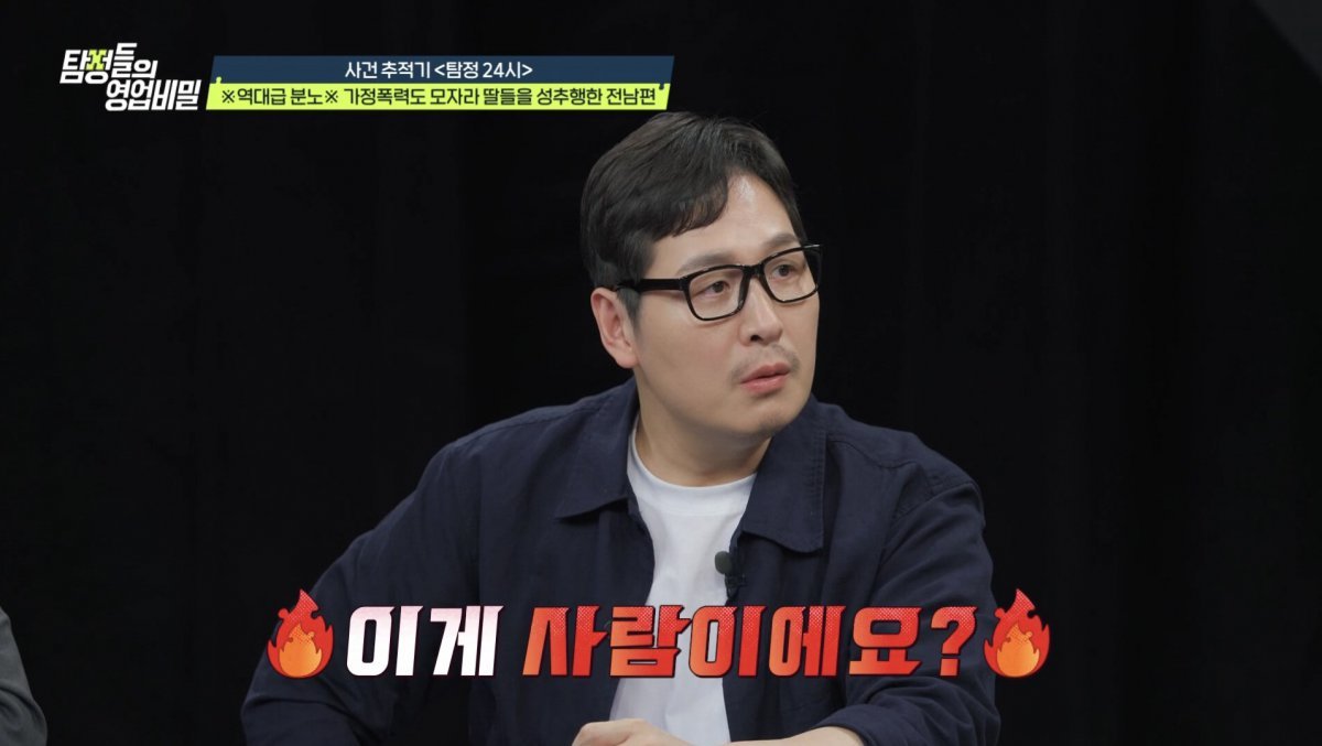 지난 19일 채널A ‘탐정들의 영업비밀’ 속 ‘탐정 24시’에는 결혼 생활 15년간 전남편의 심각한 가정 폭력에 시달리다 7년 전 이혼한 의뢰인이 찾아왔다. 의뢰인은 친정 아버지가 자신과 전남편에게 공동 명의로 물려준 식당을 전남편이 몰래 단독 명의로 바꿔 빼앗기게 됐다는 사실도 공개했다. 해당 식당은 의뢰인의 부모님이 30년 넘게 운영했고, 줄 서는 맛집으로도 유명한 곳이었다. 뿐만 아니라 이혼 과정에서 전남편이 딸들을 성추행하고 강제로 음란물을 보여준 충격적인 만행이 드러나기도 했다. 데프콘, 유인나, 김풍을 비롯한 출연자들은 “이게 사람이냐”, “진짜 치가 떨리고 살이 떨린다”며 극한의 분노를 표출했다. 전남편은 아동 학대, 성추행, 상해죄로 징역 2년 6개월을 선고받고 복역했다.