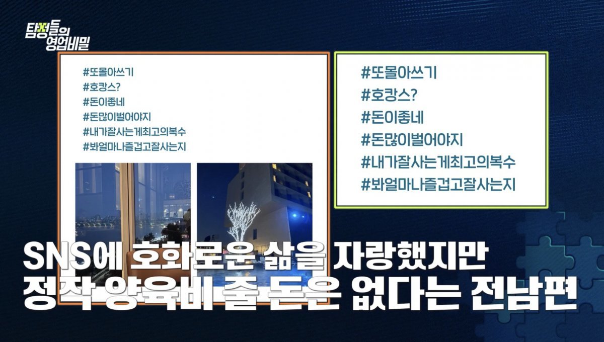 더 큰 문제는 의뢰인의 전남편이 월 200만 원의 양육비를 3년 6개월간 주지 않고 있다는 것이었다. 총 금액은 8천만 원에 달했다. 교도소 출소 후에는 기초생활수급자가 되어 한 달에 60만 원을 번다며 양육비 감액까지 요청했다. 의뢰인은 전남편이 자신에게 빼앗은 식당으로 버는 수익이 월 5천만 원이라며 “명의 돌리고 재산을 은닉한 것”이라고 주장했다. 실제로 전남편은 SNS에 약 2천만 원짜리 명품 시계, 월 150만 원 대금을 내야 하는 수입차 등을 과시하며 호화로운 삶을 자랑하고 있었다. 이에 도깨비 탐정단은 의뢰인 전남편의 등록상 거주지인 고시원을 찾았다. 그런데 고시원 관리인은 “경찰도 이분을 찾고 있다”라며 뜻밖의 이야기를 꺼냈다. 과연 의뢰인의 전남편에게는 어떤 사연이 숨어있을지 다음 주 ‘탐정들의 영업비밀’에서 이어진다.