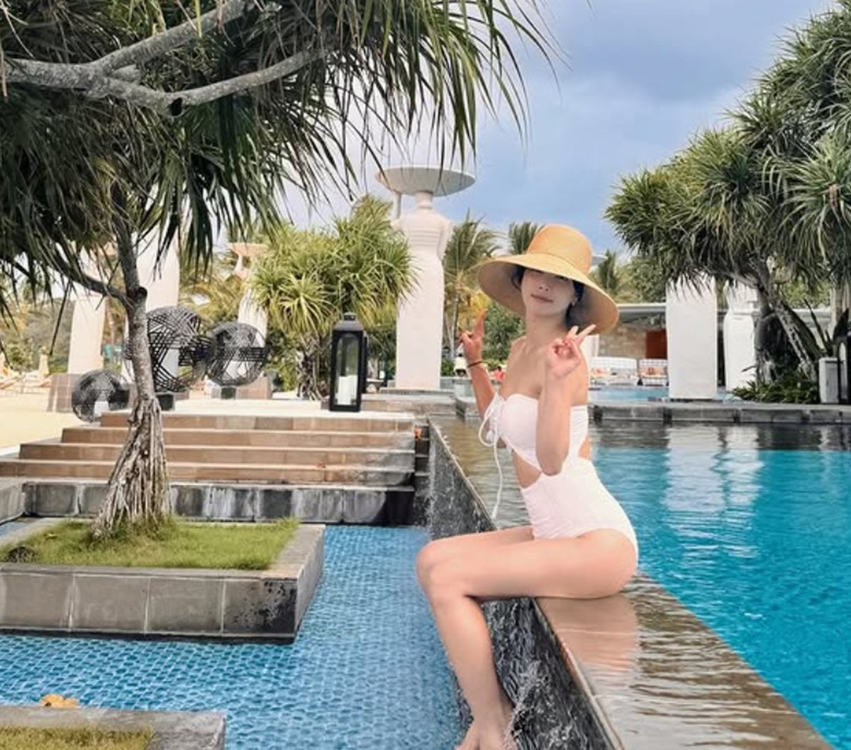 공유한 사진 속 기은세는 해변과 수영장을 배경으로 다양한 포즈를 취하고 있다. 끈 없는 튜브톱에 컷아웃 형태의 흰 수영복을 입은 기은세는 군살 없는 몸매로 시선을 끈다. 챙이 넓은 밀짚모자로는 리조트룩을 완성했다.