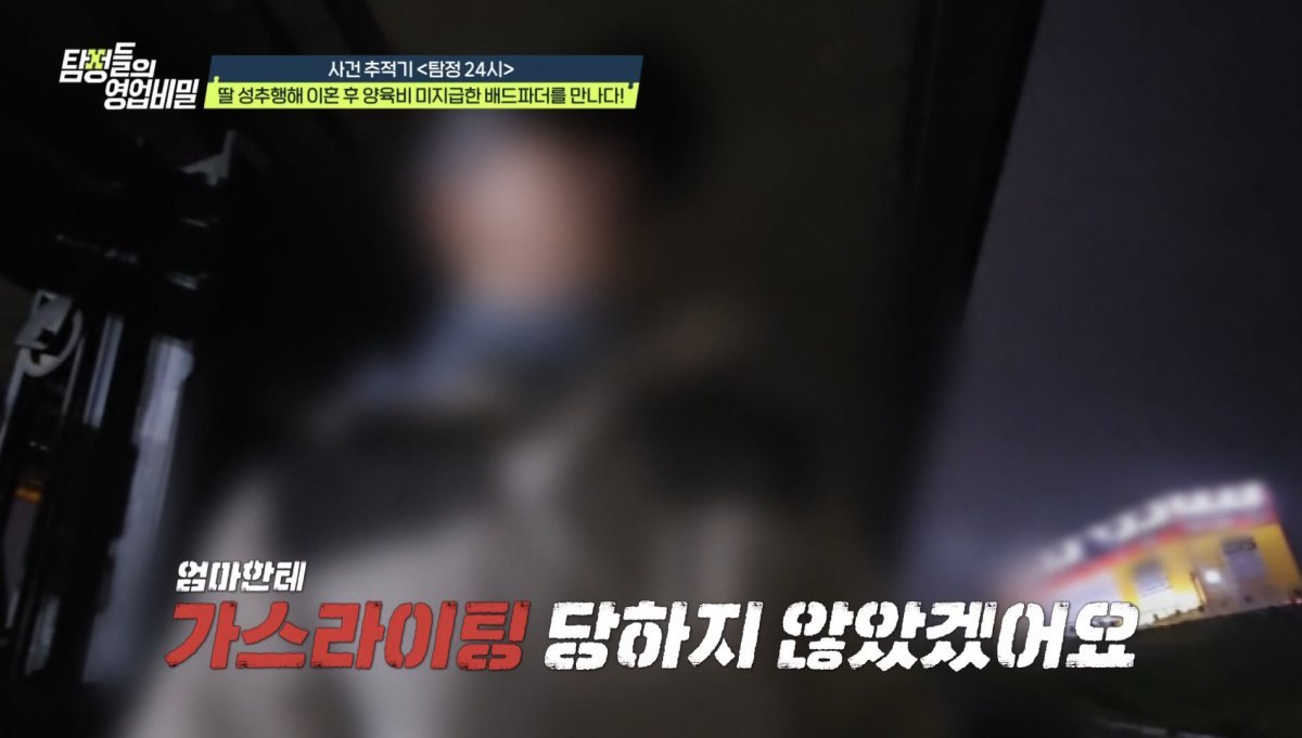 지난 26일 채널A ‘탐정들의 영업비밀’ 속 ‘탐정 24시’에서는 결혼 생활 내내 아내를 폭행한 것도 모자라, 딸들을 성추행해 이혼에 이른 ‘역대급 배드 파더’ 전남편과 의뢰인인 전부인이 아이들의 양육비를 둘러싸고 첨예하게 대립했다. 의뢰인은 친정 부모님께 공동 명의로 물려받은 식당을 전남편이 몰래 단독 명의로 바꿔 빼앗았다고 주장했다. 재판 당시 전남편이 밝힌 식당의 월 수익은 5천만 원이었지만, 그가 교도소 출소 후 기초생활수급자가 되어 의도적으로 양육비를 회피하고 있다는 의견도 전했다.