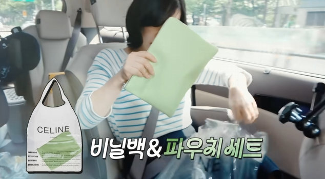 비닐봉지(?) 내부에 가죽 파우치가 세트로 있는 구성. 해당 제품은 83만원으로 알려졌다. 담당 PD가 “비닐봉지 취급해서 죄송하다”고 사과해 웃음을 자아냈다.