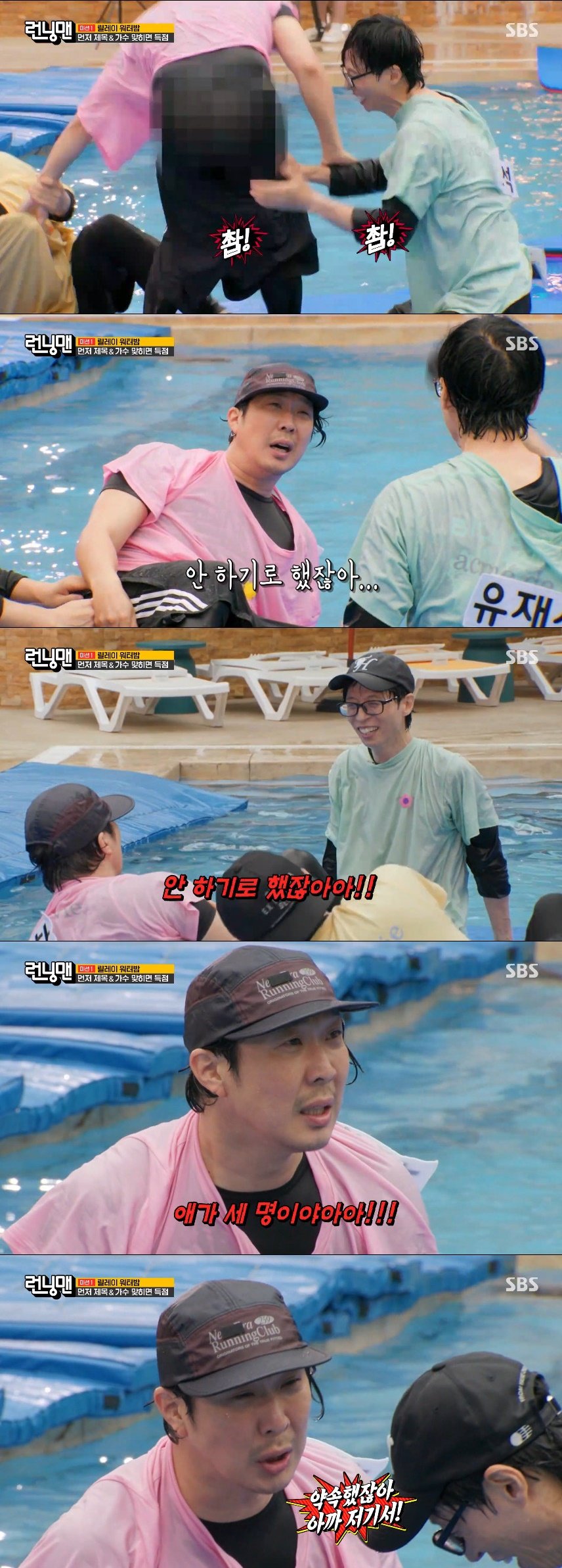 유재석은 “미안해요”라고 사과했지만, 하하는 “애가 세 명이야! 약속했잖아 아까 저기서! 왜 그걸 못참아”라고 분노했다.