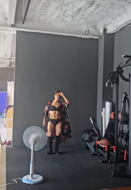 공개된 영상에서 김혜선은 블랙 브라탑과 언더웨어, 꽃무늬 시스루 가운을 매치해 몸매를 더욱 부각시키고 있다.