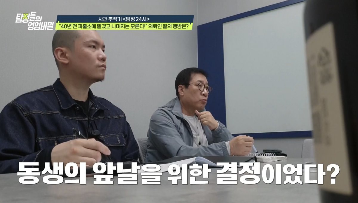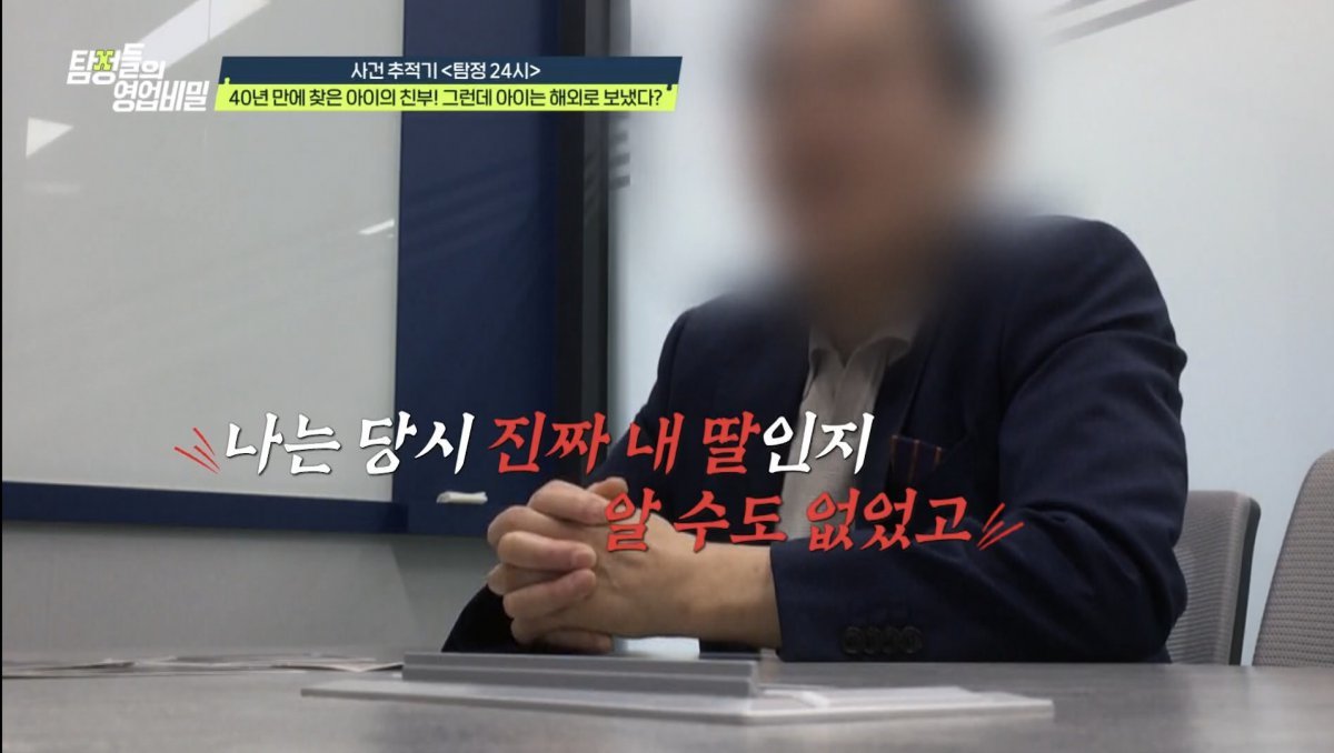 지난 23일 채널A ‘탐정들의 영업비밀’ 속 ‘탐정 24시’에서는 40년 전 큰아버지에게 입양 보낸 친딸을 찾아달라는 의뢰가 안타까움 속에 마무리됐다. 의뢰인은 과거 연인과 동거 중 임신을 하게 됐지만 남자는 결혼을 앞두고 갈등 끝에 집을 나가버렸다. 의뢰인은 아이를 지키기 위해 혼자 출산을 했지만, 당시 사회적인 시선 때문에 출생 신고도 하지 못했다. 결국 생활고에 시달리던 의뢰인은 자식이 없던 과거 연인의 형, 즉 아이 큰아버지에게 딸을 입양 보냈다. 의뢰인은 “평생을 죄인으로 살았다”고 털어놓으며 이제라도 딸을 찾고 싶다고 호소했다.