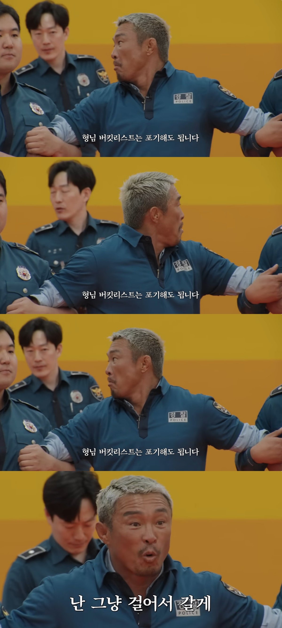 추성훈이 진짜 테이저건을 맞기 위해 나섰고, 그의 양팔까지 잡힌 상황. 이에 타블로는 “형님 버킷리스트는 포기해도 됩니다”라며 “지금이라도 포기하셔도 돼요”라고 걱정했다.