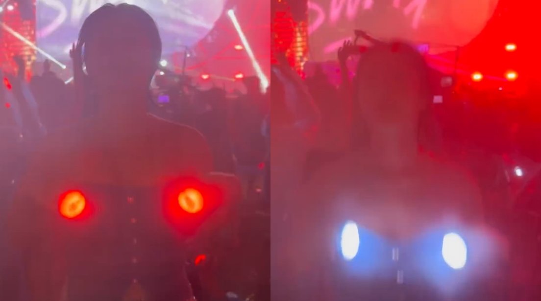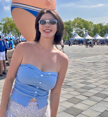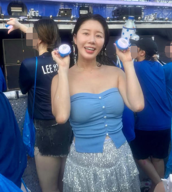 타이트한 하늘색 튜브톱에 은색 스커트를 입고 과감한 자태를 뽐낸 나비. 물에 흠뻑 젖은 그는 관객들과 함께 방방 뛰며 남다른 에너지를 발산했다. 흘러내리는 튜브톱을 재정비해야 할 정도. ‘흠뻑쇼’를 제대로 즐긴 나비에 누리꾼들은 “육아 스트레스를 풀었다” “무릎 괜찮나” “보는 것만으로도 신난다” “진짜 재밌었겠다” 등의 반응을 보였다.