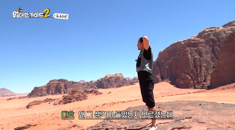 8일 오후 방송된 MBC에브리원 예능프로그램 ‘위대한 가이드2’에서는 박명수, 김대호, 최다니엘, 이무진 ‘사형제’가 요르단의 특별한 사막 ‘와디 럼’ 탐험을 시작한 장면이 그려졌다.
