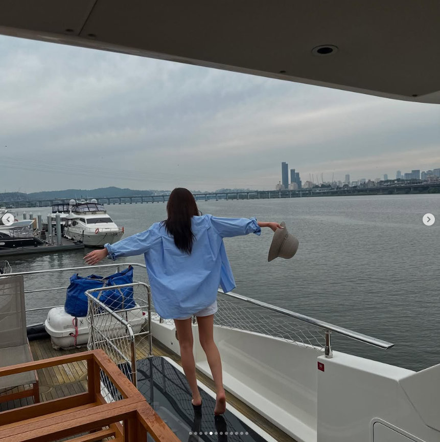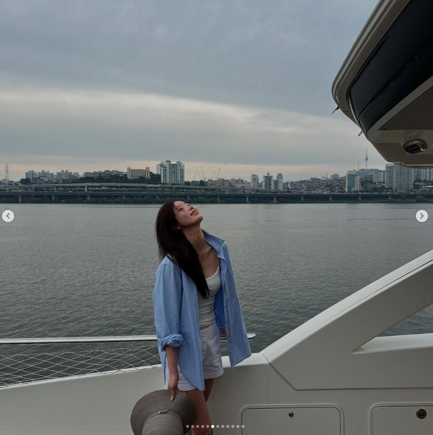 공개된 사진에는 요트 위에서 선상 파티를 즐기는 임수향 모습이 담긴다. 짧은 의상 위에 셔츠로 멋을 낸 임수향은 이따금 노출하면서 묘한 분위기를 연출한다. 한강에서 서울을 배경으로 행복한 표정을 짓는 임수향. 지인들과 특별한 추억을 쌓는 듯하다.