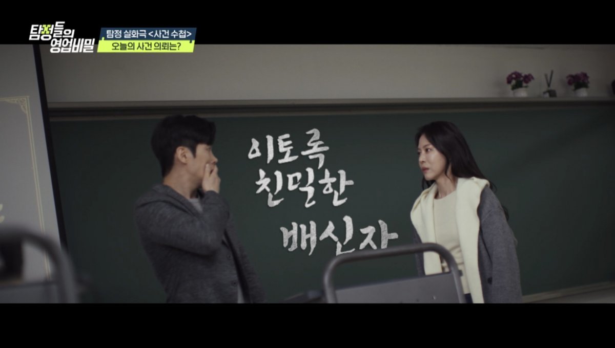 사건을 맡은 탐정단은 의뢰인 남편의 행적을 쫓던 중 늦은 밤 어두운 바에서 학원생의 학부모와 만나는 모습을 포착한다. 이들은 주위의 시선도 신경쓰지 않은 채 진한 스킨십을 나누더니 자연스럽게 모텔로 이동한다. 이 광경을 담은 사진을 탐정단으로부터 건네받은 의뢰인은 불륜녀의 정체에 경악한다. 이윽고 의뢰인은 남편의 불륜녀와 직접 대면하게 되지만, 눈 하나 깜빡하지 않고 자신을 도발하는 모습에 또 한 번 충격을 감추지 못한다. 역대급 적반하장 불륜녀의 등장에 데프콘은 “잘못했다고 빌어도 모자랄 판에!”라며 격분한다. 학원 원장인 남편과 바람을 피운 학부모이자 불륜녀의 정체는 누구일지 ‘탐정들의 영업비밀’ 방송을 통해 확인할 수 있다.