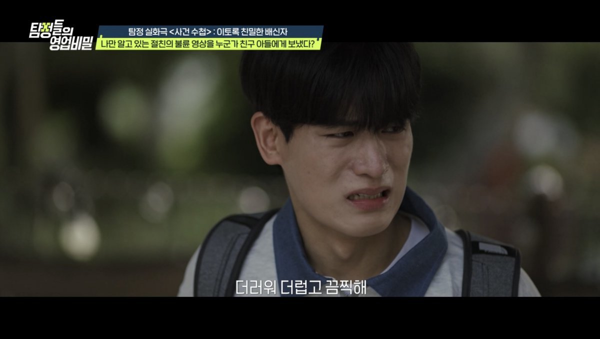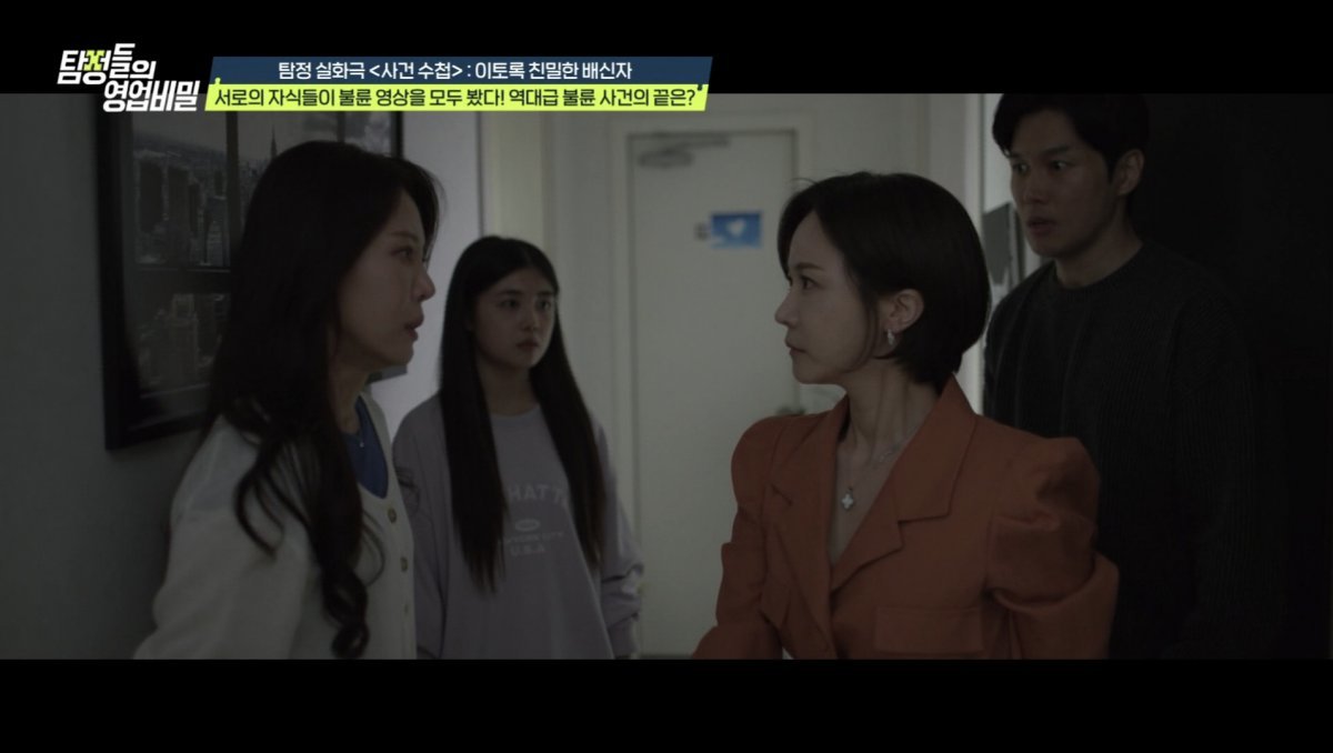 탐정 실화극 ‘사건 수첩’에서는 “남편이 치킨을 잘못 배달시켜서 확인해 보니, 어느 모텔의 주소가 찍혀있었다”는 한 여성 의뢰인이 등장했다. 탐정단의 조사 결과 학원 원장인 남편의 불륜 상대는 학부모이자 의뢰인의 절친으로 밝혀져 충격을 더했다. 의뢰인은 이혼녀인 절친이 바쁠 때마다 대신해서 아들 라이드를 해 명문대에 입학시켰다. 또 반찬, 살림까지 물심양면으로 도왔지만 뒤통수를 맞은 것이었다. 의뢰인의 절친은 친구 남편과의 불륜을 들키고도 눈 하나 깜빡하지 않았다. 심지어 “네 남편 나한테 버려주면 안 될까?”라며 오히려 뻔뻔하게 이혼을 종용했다. 데프콘은 “‘탐정들의 영업비밀’에서 많은 불륜 이야기를 다뤘지만, 역대급 적반하장이다”라며 경악을 금치 못했다.