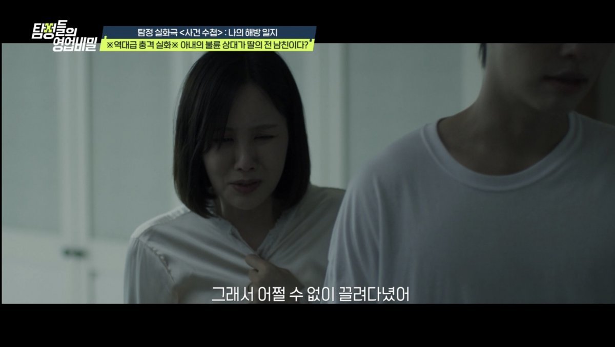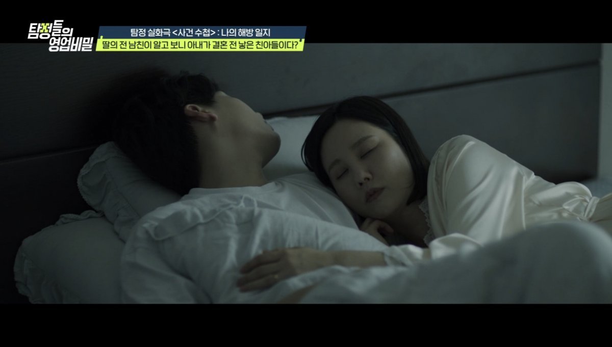 인기 유튜버 랄랄이 ‘부캐 이명화’로 함께한 ‘사건 수첩’에서는 “고2 딸이 집에서 돈과 명품백 등을 훔쳐 가출을 했다”라는 한 부부의 이야기가 다뤄졌다. 탐정단이 명품 중고거래 구매자로 위장해 뒤를 쫓은 결과, 의뢰인의 딸은 가출 후 남자친구와 동거를 하고 있었던 것으로 드러났다. 의뢰인 부부에게 이 사실을 들킨 후 딸은 남자친구와 헤어지고 다시 집으로 돌아갔다. 그런데 얼마 후 “이번에는 아내가 수상하다”라며 남편이 다시 탐정단을 찾아왔다. 그리고 의뢰인의 아내가 딸과 동거했던 전 남자친구에게 협박을 받으며 돈봉투를 건네는 모습이 탐정단에게 포착됐다. 이어서 두 사람이 의뢰인의 집 침대에서 헐벗은 채 함께 누워있는 충격적인 장면이 목격됐다.