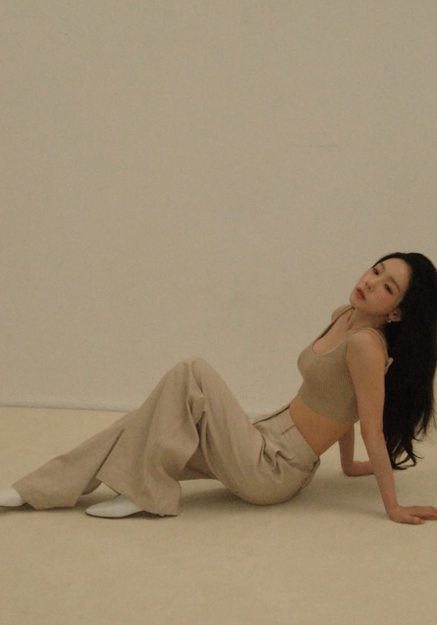 태연은 15일 자신의 인스타그램에 뷰티 화보 현장에서 찍은 비하인드 컷을 여러장 공개했다. 사진 속 그는 누드톤 브라톱에 와이드 팬츠를 매치해 군살 하나 없이 잘록한 허리라인을 드러냈다.